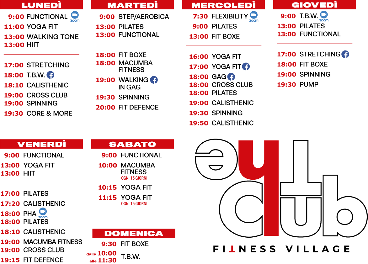 Le lezioni contrassegnate con le icone si svolgeranno sia in presenza che on-line. L’accesso alla lezione sarà consentito previa prenotazione all’app WELLNESS IN CLOUD